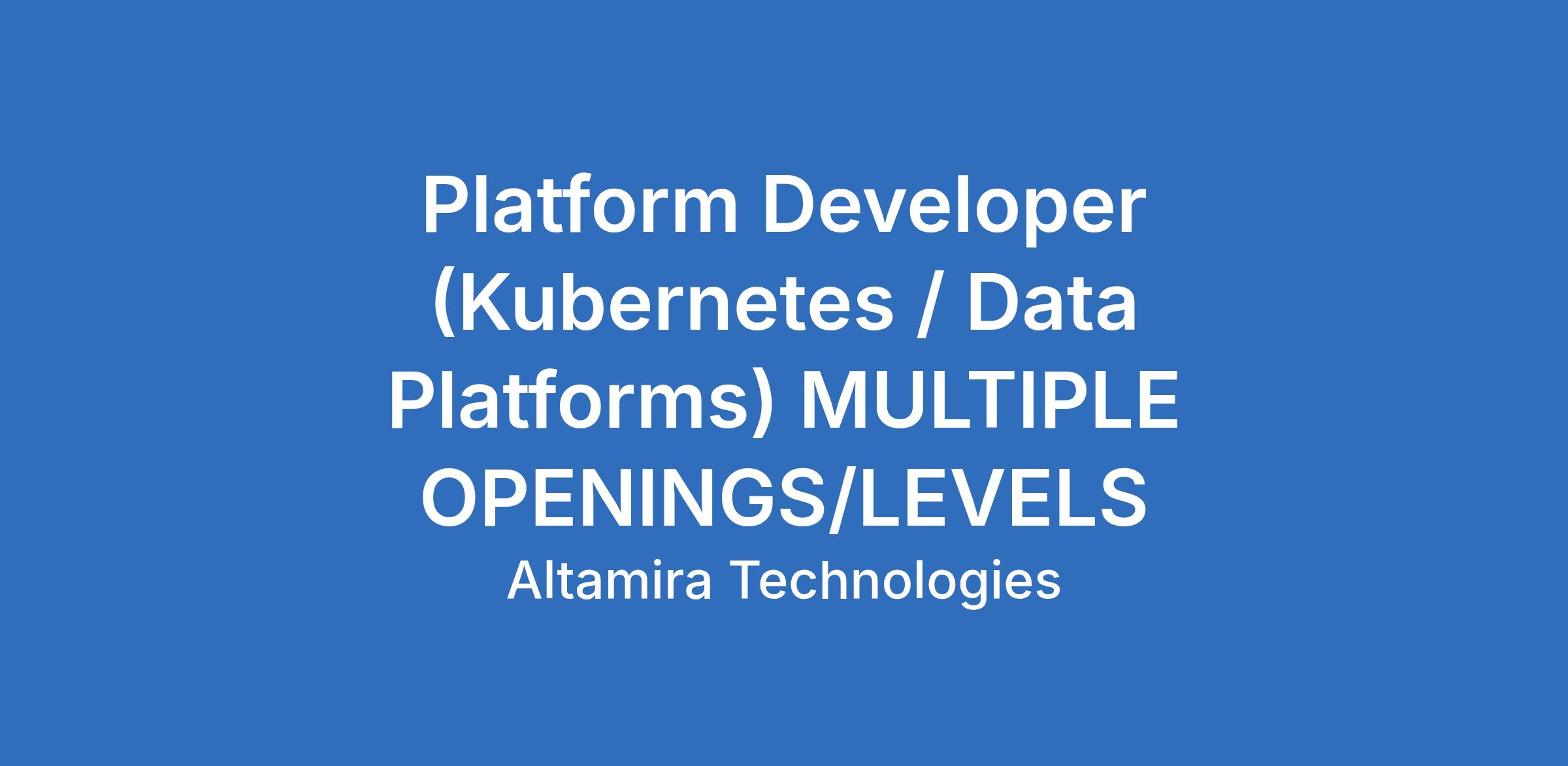 Altamira is seeking a Platform Developer to support the design, development, and deployment of containerized applications and data services within secure, mission-critical environments. This role focuses on building and maintaining Kubernetes-based platforms and developing scalable, reliable data-driven applications.