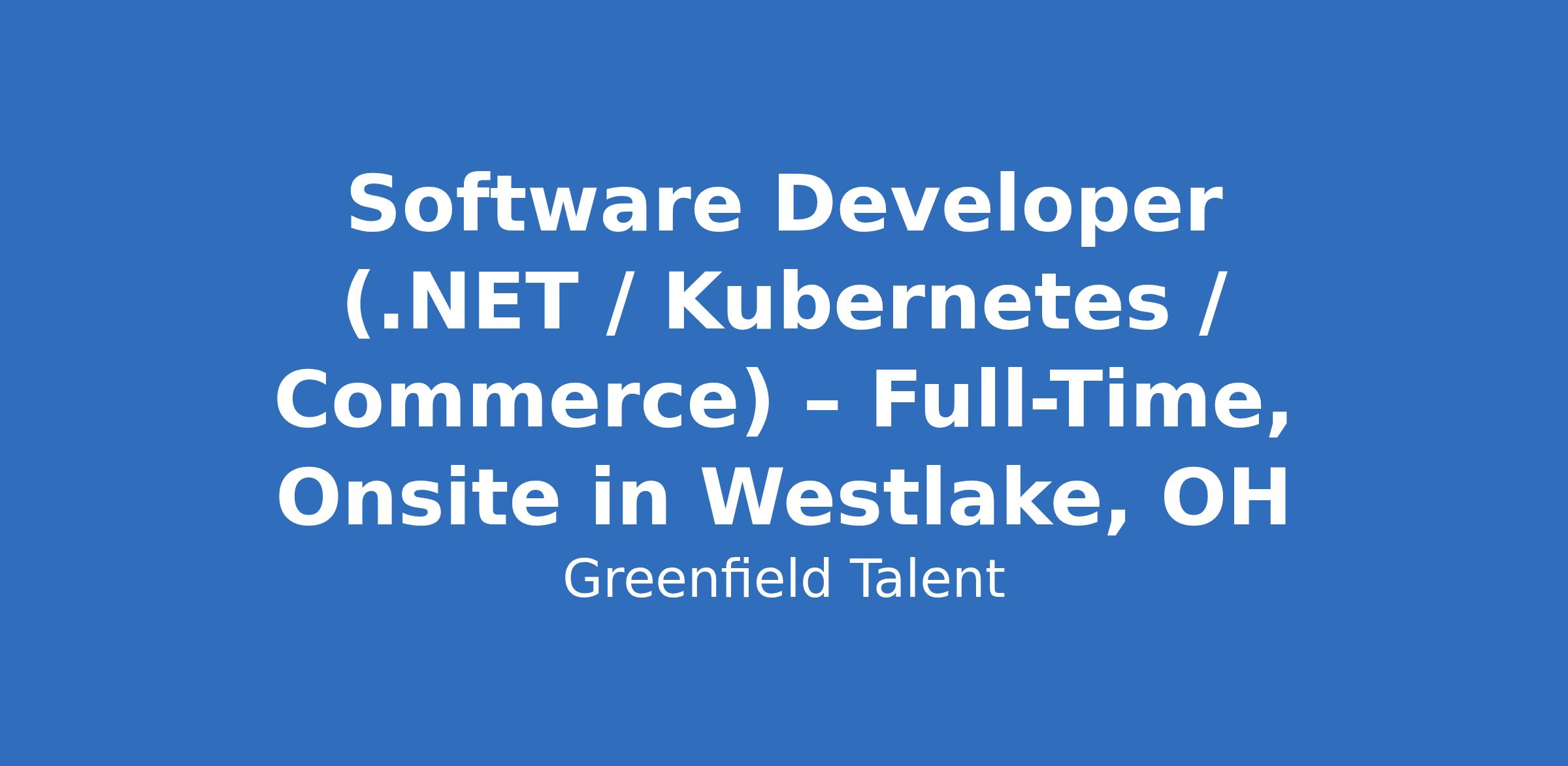 Software Developer (.NET / Kubernetes / Commerce) – Full-Time, Onsite in Westlake, OH