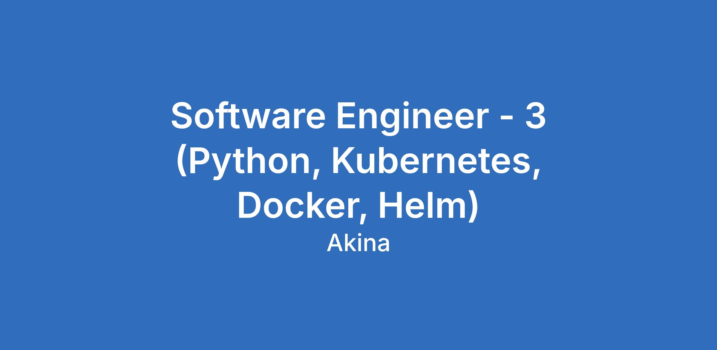 Required Skills: Python, Kubernetes, Docker, Helm required. Able to provide customer support. Self-starter